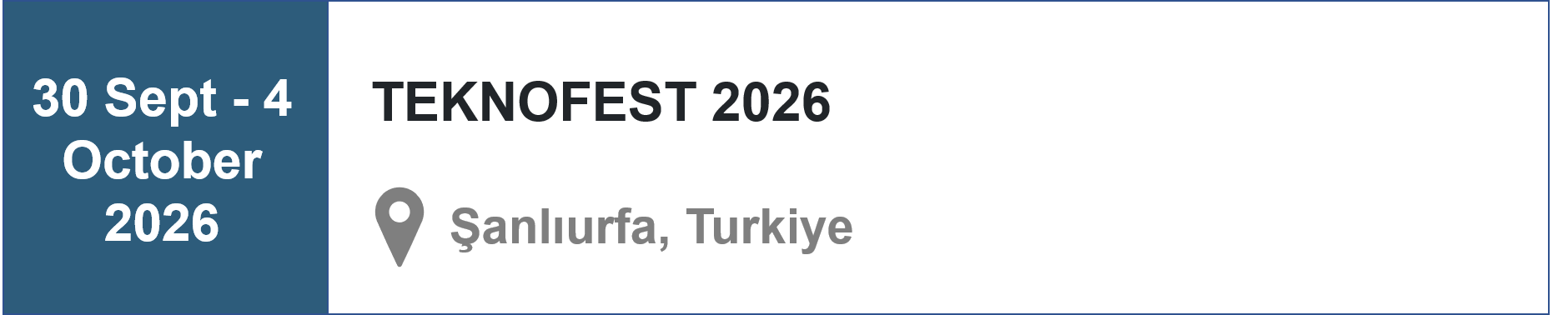 | Event Description | TEKNOFEST 2026 Şanlıurfa will bring together participants from more than 100 countries and enabling the development of cooperation in next-generation technologies, defense, aviation, and space industries-award-winning technology competitions which will be held across 52 main and 127 sub-categories. |
